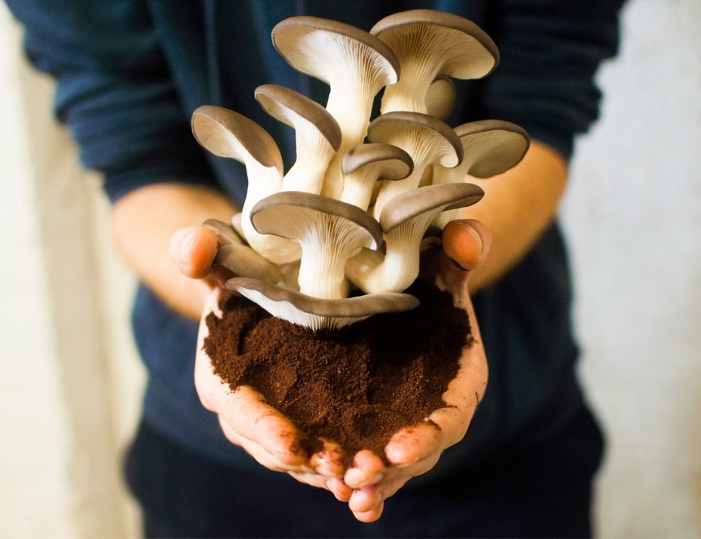 A Belgian company named PermaFungi is transforming used coffee grounds into edible mushrooms and insulation tiles.
